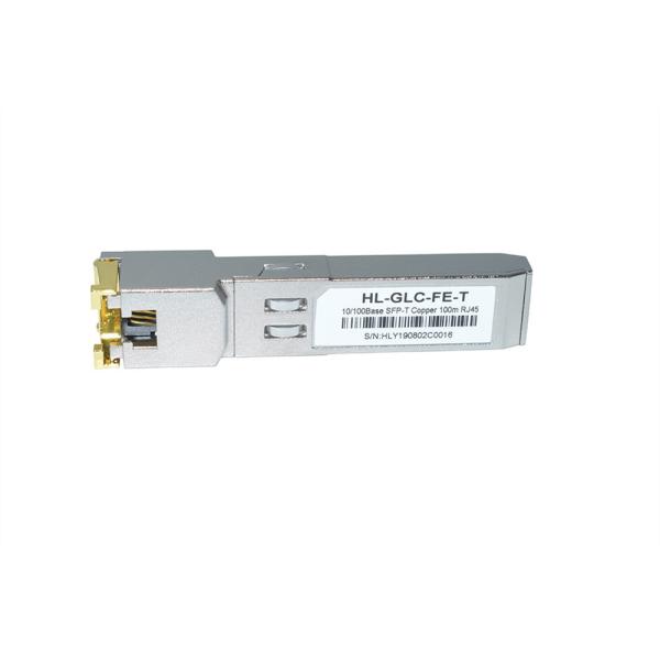 Copper Small Form Pluggable (SFP) transceivers is high performance, cost effective module compliant with the Gigabit Ethernet and 100BASE-T standards as specified in IEEE 802. 3-2002 and IEEE 802.3ab, which supporting 100Mbps data- rate up to 100 meters reach over unshielded twisted-pair CAT 5 cable. The module supports100 Mbps (or 10/100Mbps) full duplex data-links with 5-level Pulse Amplitude Modulation (PAM) signals. All four pairs in the cable are used with symbol rate at 250Mbps on each pair. The module provides standard serial ID information compliant with SFP MSA, which can be accessed with address of A0h via the 2wire serial CMOS EEPROM protocol. The physical IC can also be accessed via 2wire serial bus at address ACh.